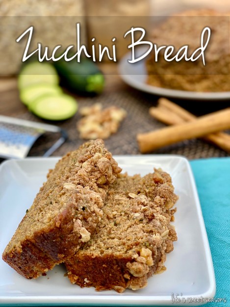 I had never heard of zucchini bread before moving to Utah. It was one of those things that everyone seemed to know how to make or had at least had before, and all I could think was Seriously? Zucchini? What could possibly be sweet and scrumptious that’s made from a vegetable? But then my next thought was carrot cake, you dork and then I was thankful that all of those thoughts had been kept to myself and I hadn’t said anything out loud. My student teacher, Lyndsey, brought some to work to share with me and that same week Matthew and Lindsay’s babysitter had made some for them for snack time that I was able to try. Well, I was sold. When I searched to find my own recipe I read a ton of reviews, one of which suggested adding a crumb topping on it. I gotta say, the crumb topping takes an already good recipe over the top. My own changes were to substitute half the granulated white sugar for brown and half the oil for applesauce. I’ve tried using only applesauce and Mike noticed and commented, “Does it seem a little drier to you?” So naturally, in order to keep my husband happy I only tried that once. Matthew and Lindsay ask for this on a regular basis. It’s also something that I consistently make whenever we go camping or on vacation, so they associate it with tents and hotel rooms. We are actually on a trip now. So while you’re reading this, I should be eating a piece of zucchini bread in one hand while pushing a stroller in the other heading into the Magic Kingdom! My kids don’t know yet, but they’re sick of being in the car on day two. Hopefully when they see Mickey Mouse and realize where we’ve brought them they’ll forgive us. Hooray for road trips!