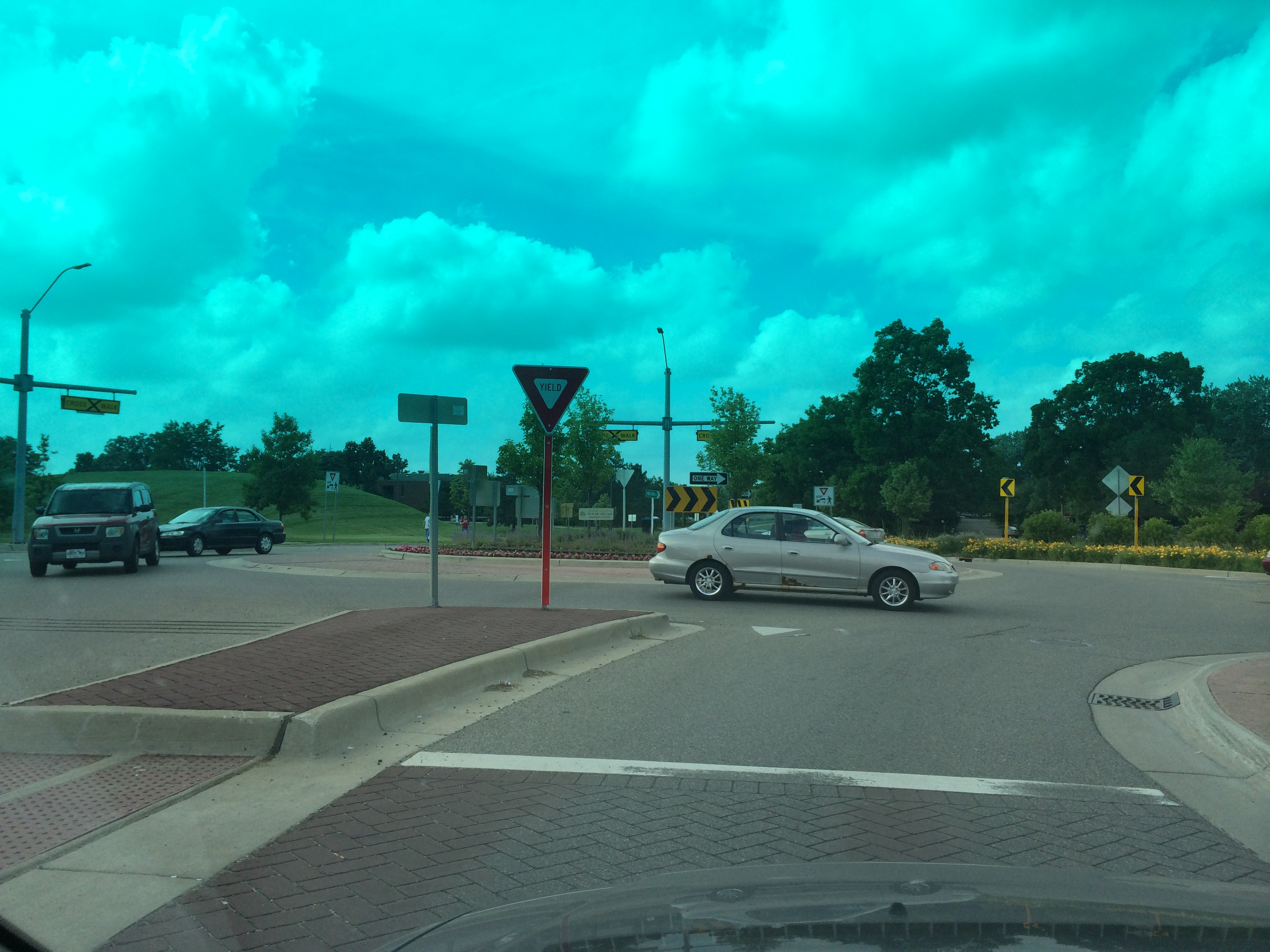 - Roundabouts don’t have to be scary. The speed limit for one is usually 15 mph, but if you go slower than that the guy behind you is definitely going to honk so you might stay slightly above to be safe. Er, or at least socially safe from your peer drivers. Pulling out of a roundabout too fast after said driver honked at you could result in a speeding ticket. I didn’t say it did. I said it could. It could also result in a warning if the policeman realizes you’re from out-of-state and takes pity on your poor circular driving skills. I didn’t say it did. I said it could. Also, despite any natural instincts one might have, a blinker in a roundabout is unnecessary.