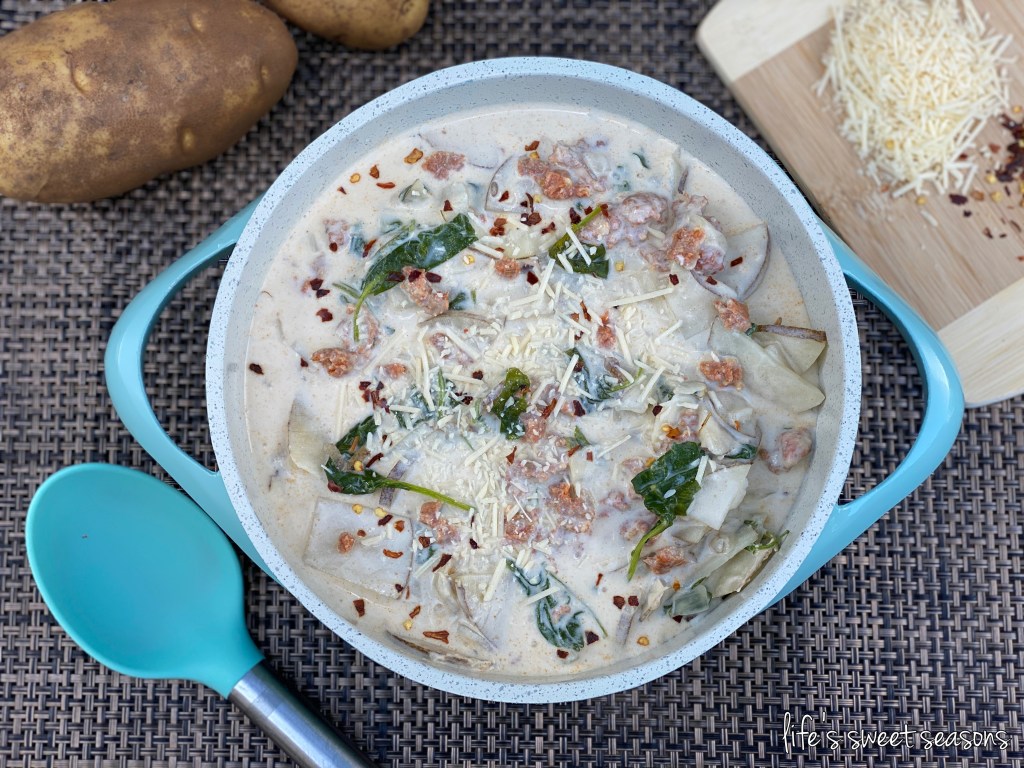Recipe from https://thefoodcharlatan.com/sausage-potato-and-kale-soup/