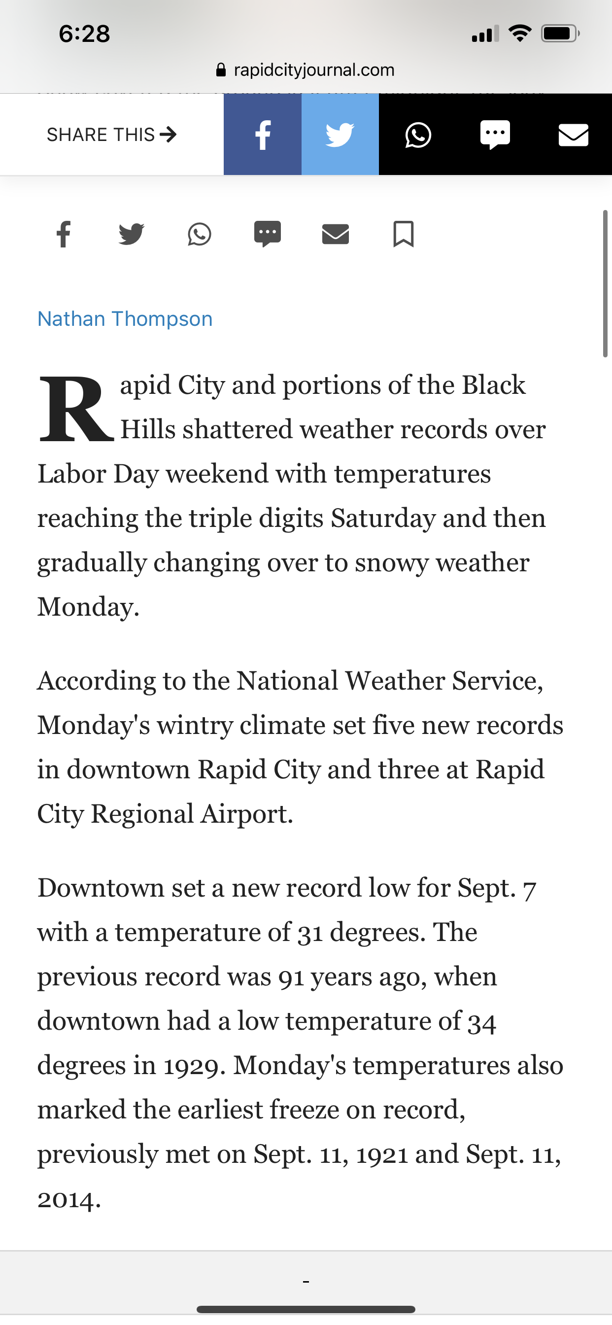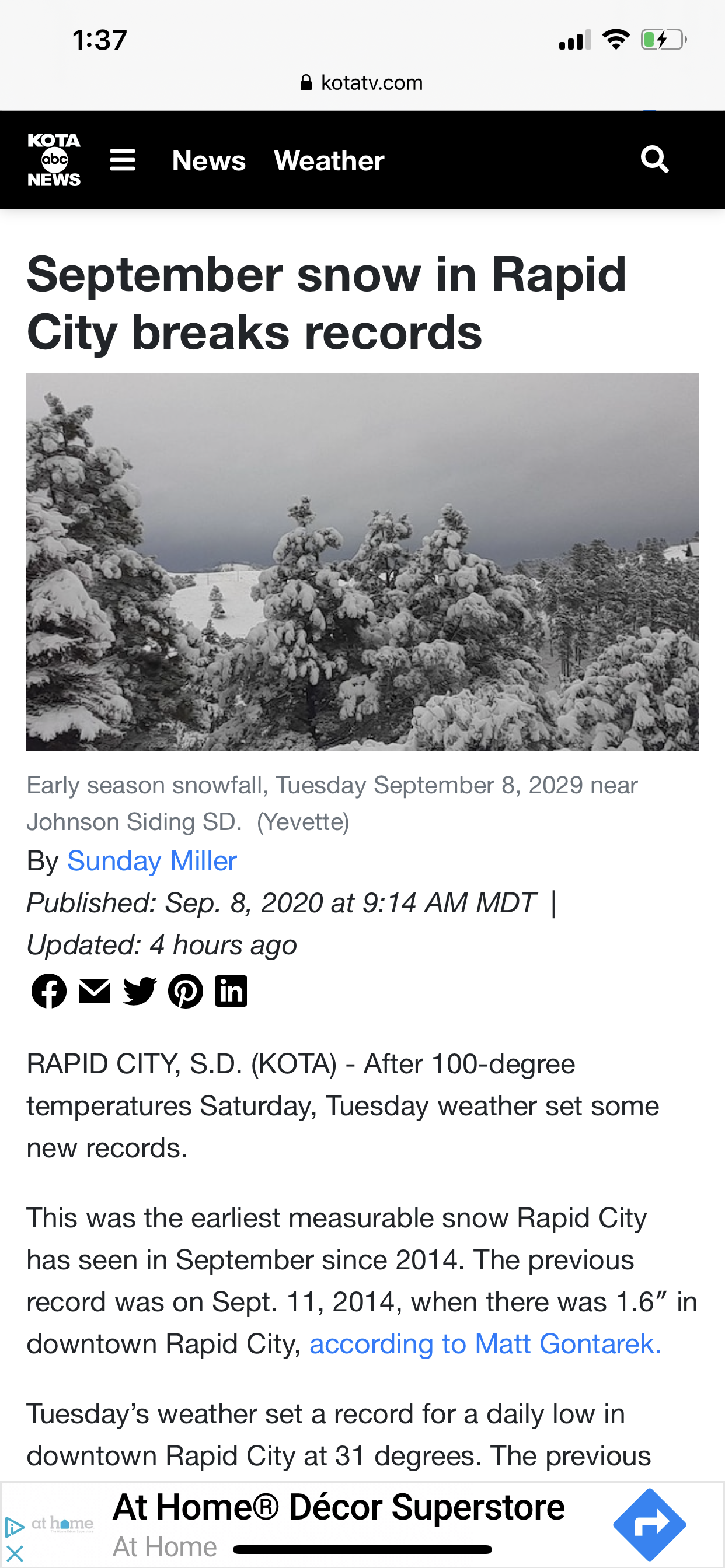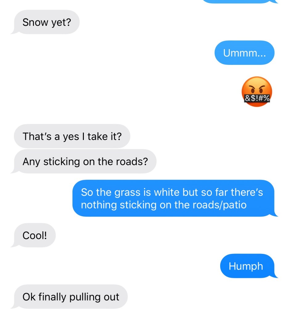 Fall in Rapid City is kinda crazy. The weather here is incredibly unpredictable. The fun? thing about that is we could have snow on hmmm… Labor Day for example, and then by Friday it’s warmed up enough to wear flip flops. This is 2020 and while I should know better than to let anything shock me, in September when we got snow, I was horrified. I had just put the kids in bed and gotten out of the shower to a quiet house and everything was right with the world until Michael texted me from work.