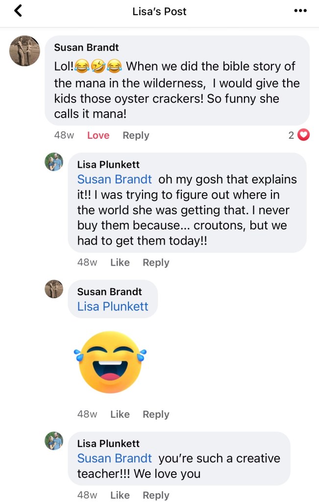 I hadn’t realized where in the world she got the idea of “manna” until her kindergarten teacher explained in the comments.